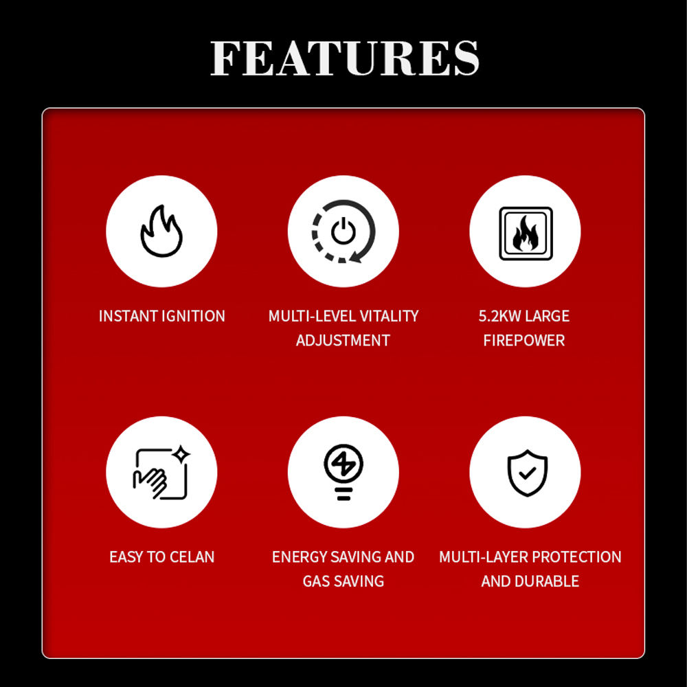 3. Efisiensi tinggi dan penghematan energi: Desain burner dioptimalkan, nyala api seragam dan efisiensi pembakaran tinggi, yang secara efektif dapat mengurangi limbah energi dan sesuai dengan konsep penghematan energi dan perlindungan lingkungan dalam keluarga modern.